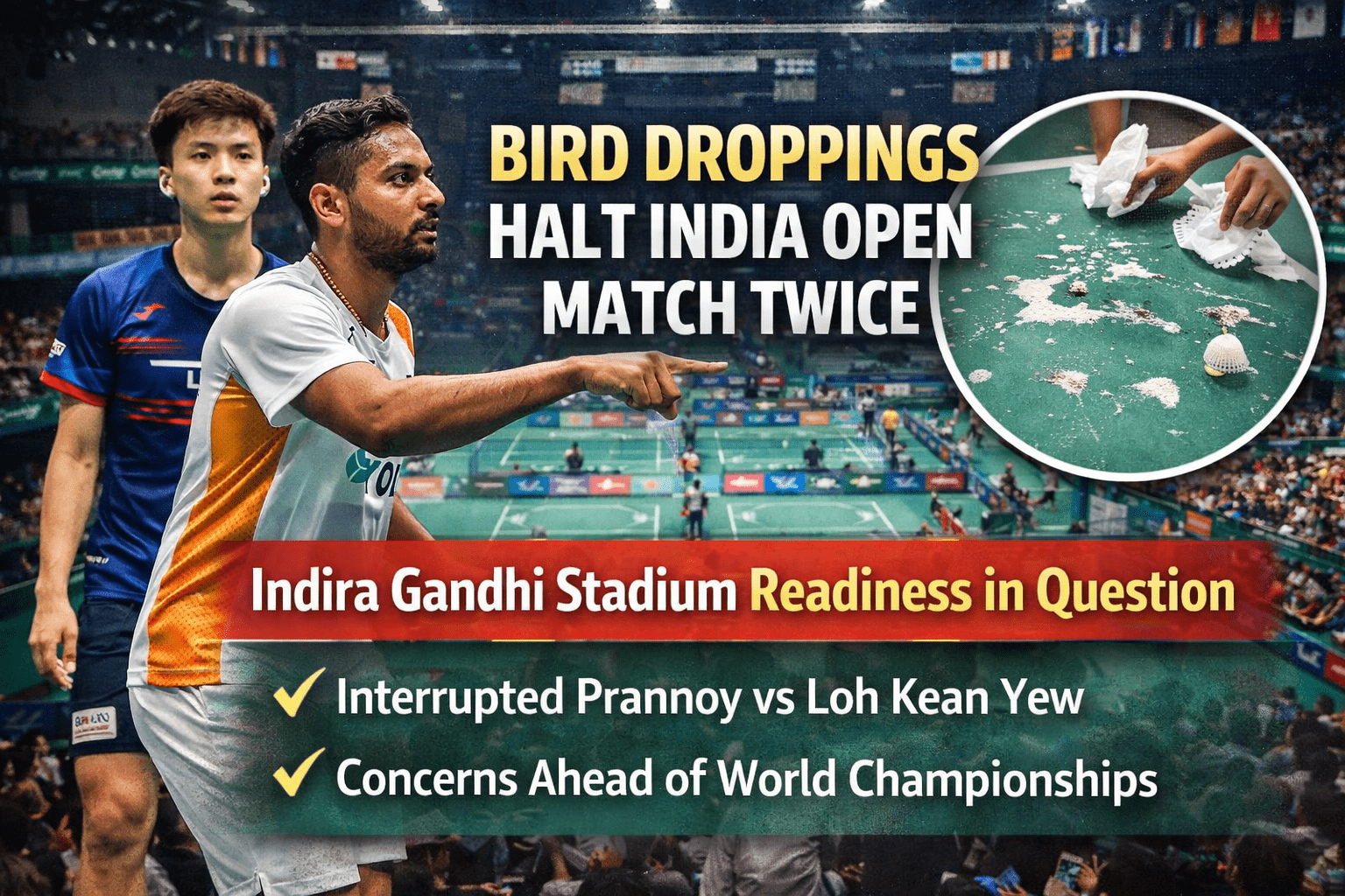 The bird droppings incident at the India Open may appear minor at first glance, but it has exposed deeper issues surrounding venue hygiene, safety, and professionalism.