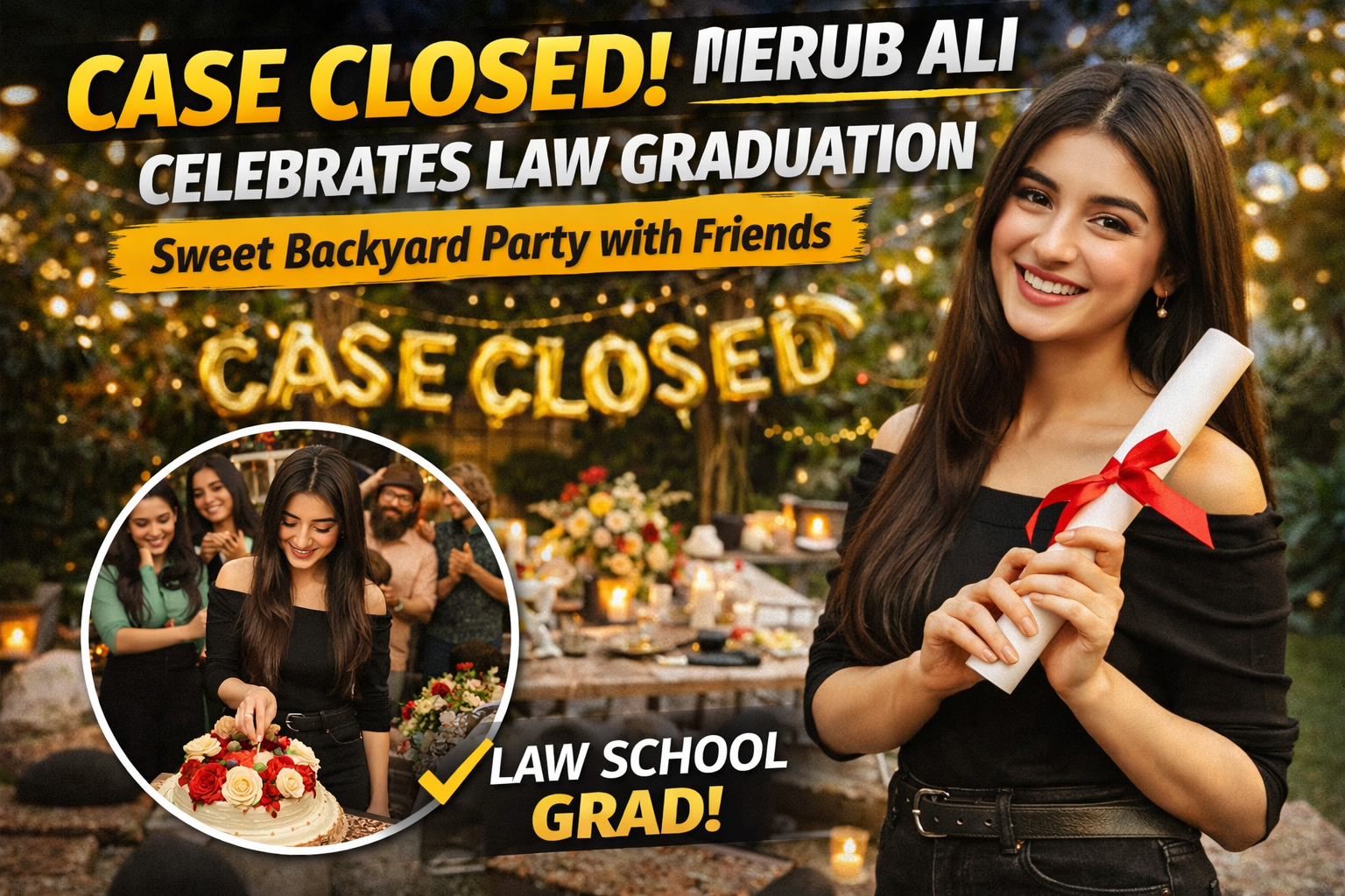 Pakistani actor Meerub Ali is celebrating a major milestone, and she did it in the most heartwarming way possible. The rising star recently marked her law school graduation with an intimate and beautifully styled backyard party, lovingly arranged by her close friends at her home.