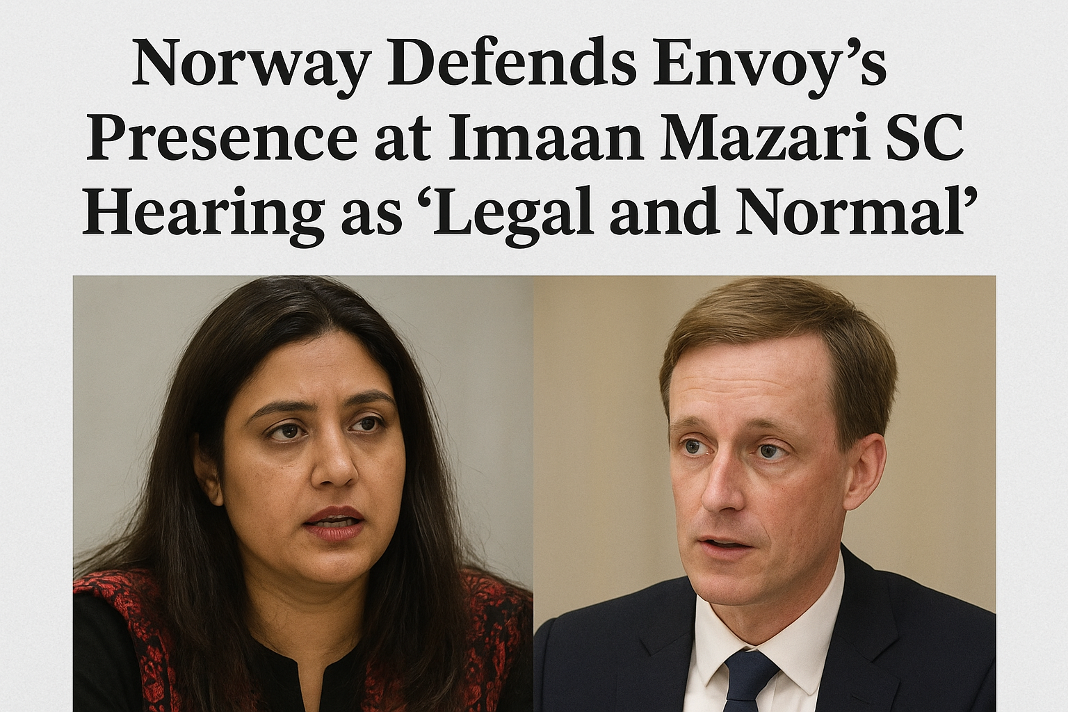 Norway Defends Envoy’s Presence at Imaan Mazari’s Supreme Court Hearing as ‘Legal and Normal’